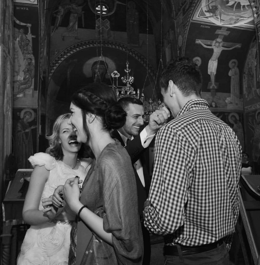Kod nekih to izazva čuđenje, kod drugih ljutnju, kod trećih oduševljenje, kod četvrtih salve smijeha… Pogleda nas i sveštenik u sred manastira pa valjda srećan što se mi toliko smijemo zaboravi da nam kaže:"Alo, šta to radite?!" Tj. Vukašinu da kaže. Ja sam svakako bila najgora iz vjeronauke.